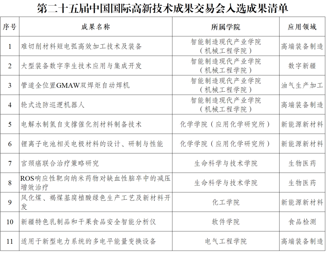 11月15日,“中国国际高新技术成果交易会”(简称高交会)在深圳隆重开幕。自治区科技厅以“强化科技创新 引领高质量发展”为主题,对我校上报的成果进行了遴选,最终确立了11项科技成果。